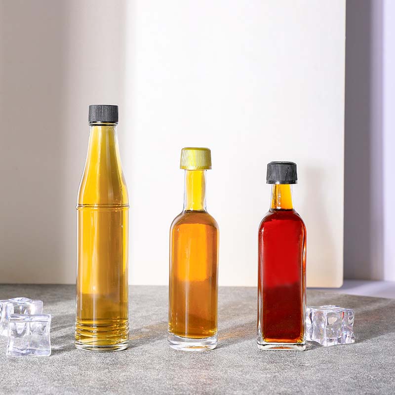 50ml Glass Arizona Bottle with thread finish. It features a plastic cap which has different color. The small 1.7 oz Glass Sauce Bottle is a classic container for marinades, barbeque sauces, syrups, salad dressing or beverages. Our high quality sauce bottles are in many different shapes and sizes. you’ll find the perfect container for any sauces.