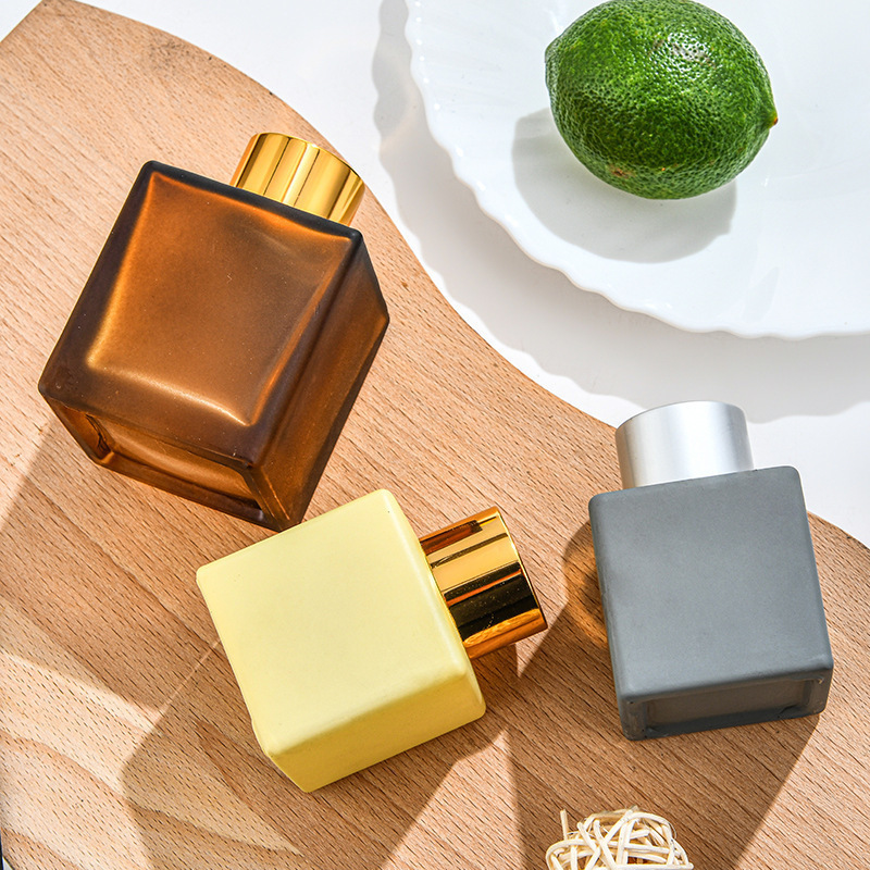 Multicolor Square Glass Oil Reed Diffuser Glass Bottle with Screw Cap